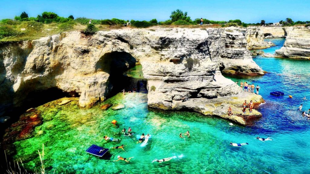 Schon bei der Ankunft in Apulien fallen die endlosen Olivenhaine ins Auge. Die Landschaft wirkt weit und ruhig, fast so, als würde die Zeit hier langsamer vergehen. Die Küste erstreckt sich entlang der Adria und des Ionischen Meeres und überrascht mit großer Vielfalt. In Gallipoli findest du breite Strände, an denen das Leben entspannt dahinzieht. Rund um Otranto hingegen verstecken sich kleine Buchten zwischen Felsen – perfekt für alle, die Ruhe suchen und stundenlang im klaren Wasser treiben möchten. Klippen, kleine Strände und lebendige Küstenorte wechseln sich ab und machen jede Fahrt zu einer Entdeckungsreise.